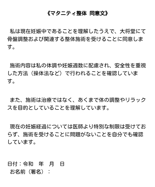 大将堂では、産後の骨盤まわりや全身のバランスを整え、育児に向けて快適に過ごせるようサポートいたします。